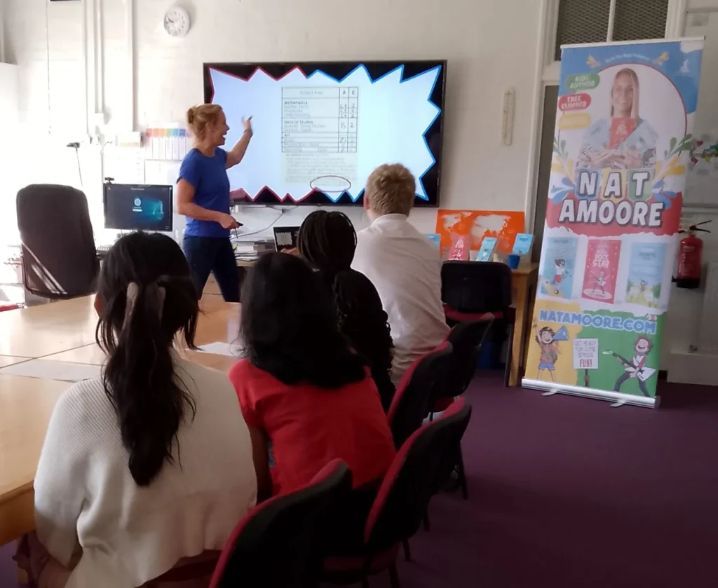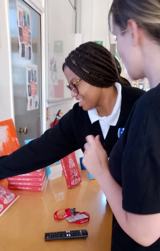 An AC student told Nat that he is reading every day because he is grounded and his mobile is confiscated. (That’s how to do it!) He has another title for his collection now as each student chose one of Nat’s books signed especially for them.